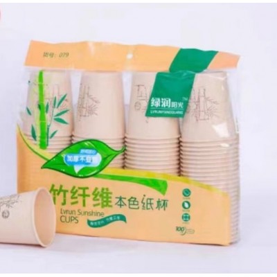 纸杯本色竹纤维一次性杯子加厚竹纤维本色100只装