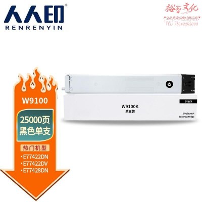 人人印 适用惠普MFP E77422dn E77428dn复印机粉盒硒鼓W9100MC墨盒碳粉仓 W9100MC粉盒黑色 SKU:SKU:yzwhyp805099