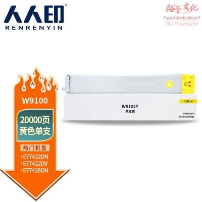 人人印 适用惠普MFP E77422dn E77428dn复印机粉盒硒鼓W9100MC墨盒碳粉仓 W9100MC粉盒黄色 SKU:SKU:yzwhyp805101