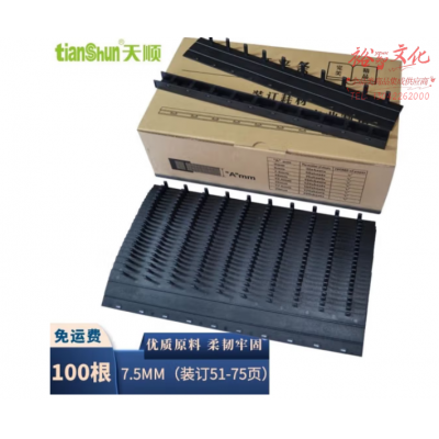 天顺 10孔装订夹条 黑色压条 A4适用厚度3MM到36MM梳式塑封夹条 7.5mm 100支装(51-75页)SKU:yzwhyp805340