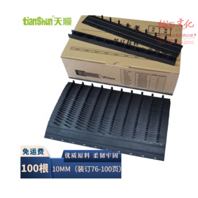 天顺 10孔装订夹条 黑色压条 A4适用厚度3MM到36MM梳式塑封夹条 10mm 100支装(76-100页)SKU:yzwhyp805341