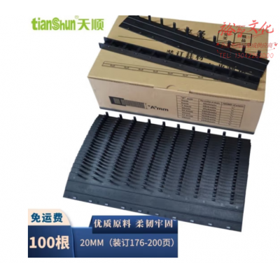 天顺 10孔装订夹条 黑色压条 A4适用厚度3MM到36MM梳式塑封夹条 20mm 100支装(176-200页)SKU:yzwhyp805345