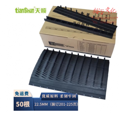 天顺 10孔装订夹条 黑色压条 A4适用厚度3MM到36MM梳式塑封夹条 22.5mm 50支装(201-225页)SKU:yzwhyp805346