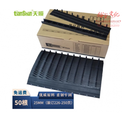天顺 10孔装订夹条 黑色压条 A4适用厚度3MM到36MM梳式塑封夹条 25mm 50支装(226-250页)SKU:yzwhyp805347