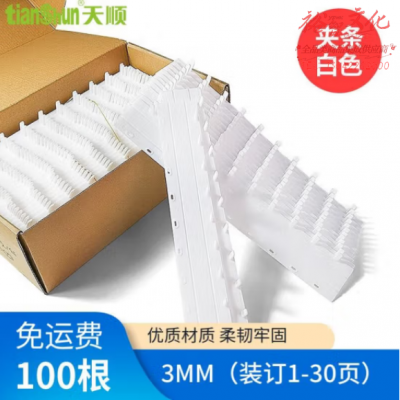 天顺 10孔装订夹条 白色压条 A4适用厚度3MM到36MM梳式塑封夹条 3mm 100支装(1-30页)SKU:yzwhyp805355