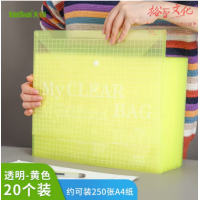 首页 > 办公用品 > 文具 > 天顺 文件袋按扣袋 塑料收纳袋A4 透明网格款黄色209A 20个装 SKU:yzwhyp805369