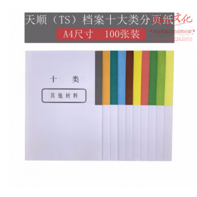 天顺 干部人事档案A4分类纸1类-10类分页纸 100张装 SKU:yzwhyp805431