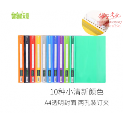 天顺 A4透明封皮两孔装订夹 马尼拉文件夹 320A 中国红 12个装 SKU:yzwhyp805453