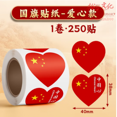 天顺 红旗贴纸 贴脸爱心国旗 爱心款-1卷(250贴)SKU:yzwhyp805500