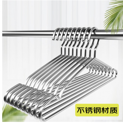 不锈钢晾衣架 成人加粗大衣架 家用防滑凹槽衣撑子 大号男款40cm 10只装/组