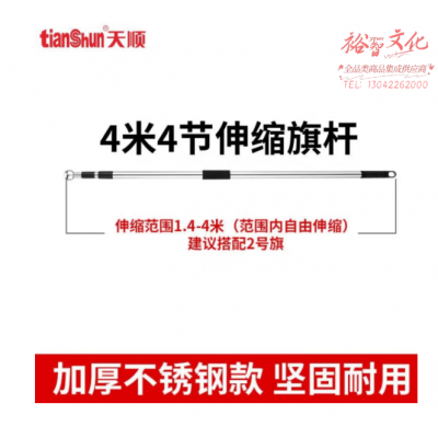 天顺 手持党旗旗杆 国旗伸缩旗杆 2345号旗帜 4米不锈钢伸缩旗杆一支 SKU:yzwhyp805544