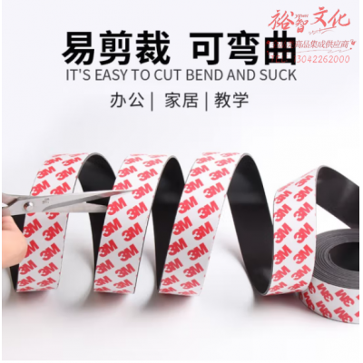 天顺 教学软磁条磁铁贴片 超薄双面 3M强力背胶黑板自粘固定器纱窗橡胶 宽1.5厘米*5米 SKU:yzwhyp805586