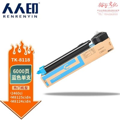 首页 > 办公用品 > 墨粉盒 > 人人印 TK8118蓝色粉盒 适用京瓷8124粉盒ECOSYS M8124cidn硒鼓 TK-8118C墨粉盒 打印一体复合机墨盒 SKU:SKU:yzwhyp805750