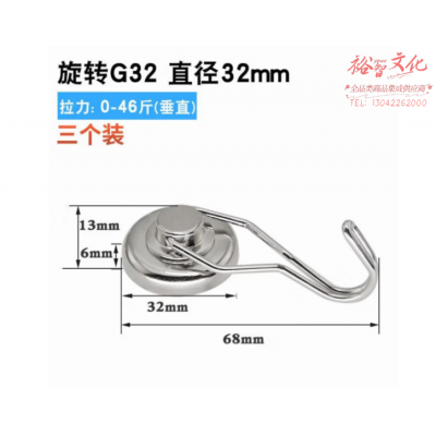 天顺 强磁磁铁挂钩 免打孔磁性挂钩 银色 直径32mm 强磁挂钩(3个) SKU:yzwhyp805758