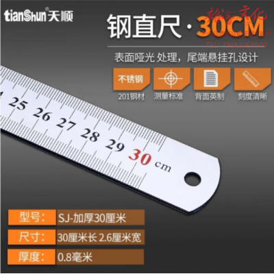 天顺 钢尺直尺 不锈钢测量工具 30厘米(把)SKU:yzwhyp805761