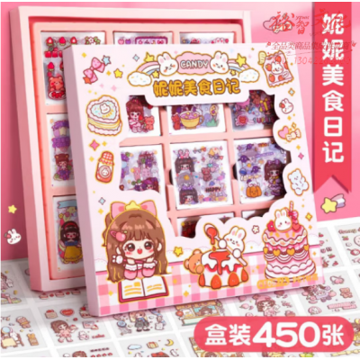 天顺 手帐贴纸套装 防水无痕 妮妮美食日记-450张(盒)SKU:yzwhyp805775