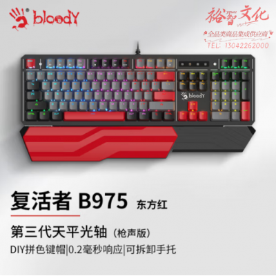 首页 > 办公设备 > 键盘 > 双飞燕(A4TECH)B975橙光轴 枪声版 有线机械键盘 血手幽灵 三代光轴电竞键盘 DIY键帽 带手托 黑色 SKU:yzwhyp806186