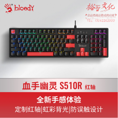 双飞燕(A4TECH)S510R 机械键盘有线电竞键盘 血手幽灵 104键 虹彩 红轴 SKU:yzwhyp806230
