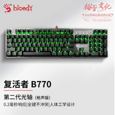 双飞燕(A4TECH)B770 血手幽灵机械键盘有线 光轴电竞键盘 单色背光 战场灰 SKU:yzwhyp806240