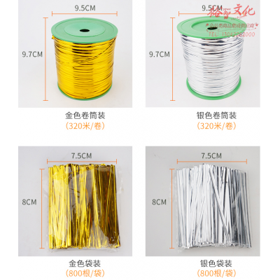 海斯迪克 HKLY-95 环保彩色扎带金属扎丝铁丝扎线筒装金银丝金属铁丝金丝 封口绳包装袋彩丝扎带 金色袋装 4袋 SKU:yzwhyp806522