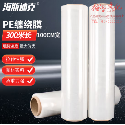 首页 > 建筑建材 > 五金附件 > 海斯迪克 缠绕膜 100cm*300m 膜净重3.8kg/卷 单卷 PE拉伸膜手工打包膜 H-59 SKU:yzwhyp806757