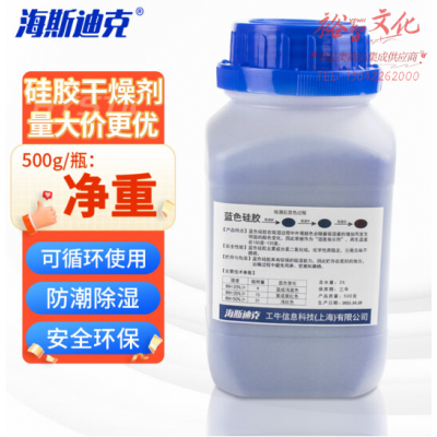 海斯迪克 蓝色变色硅胶颗粒干燥剂 工业设备仓库服装箱包除湿防潮剂 蓝色500g/瓶 HKT-116 2瓶装 SKU:yzwhyp806945