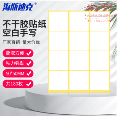 海斯迪克 HK-5138 标签贴 A5不干胶贴纸 白色不干胶小标签 空白可粘贴姓名号码手写 50*50mm(180枚/组) 2组装 SKU:yzwhyp806957