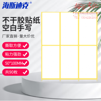 海斯迪克 HK-5138 标签贴 A5不干胶贴纸 白色空白手写 50*100mm(90枚/组) 2组装 SKU:yzwhyp806958