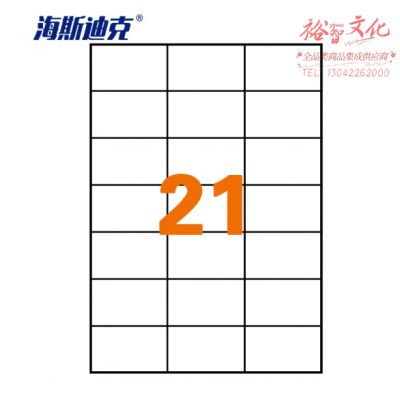 海斯迪克 HKLY-97 亚光a4不干胶 库房货位打印纸 标签纸 21格70*42.41mm 80张直角 SKU:yzwhyp806966