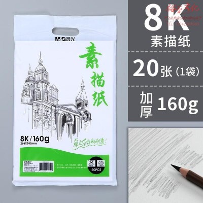 晨光 素描纸 铅画纸 美术生画纸 初学者速写纸 写生纸 M08266素描纸8K/160g/20页/包 SKU:yzwhyp806988