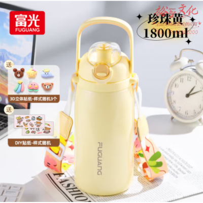 富光 WFZ1220-1800保温杯316L不锈钢大容量水杯壶 双饮吸管杯 1.8L黄色 SKU:yzwhyp807390