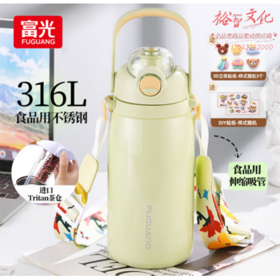 富光 WFZ1220-1800保温杯316L不锈钢大容量水杯壶 双饮吸管杯 1.8L绿色 SKU:yzwhyp807391