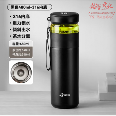 天喜(TIANXI)TBB279-01-C保温杯陶瓷内胆茶水分离杯 曜石黑500ml SKU:yzwhyp807469