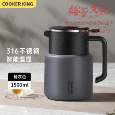 炊大皇(COOKER KING)XM15A1 316不锈钢焖茶壶大容量茶水分离智能温度显示茶壶灰色1.5L SKU:yzwhyp807586
