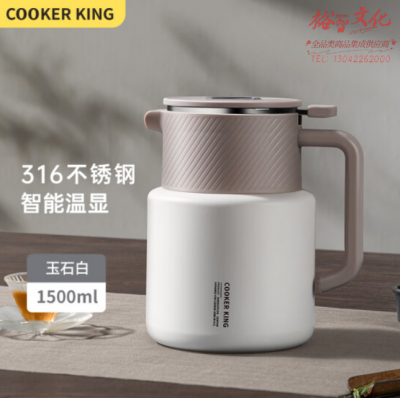炊大皇(COOKER KING)XM15A2 316不锈钢焖茶壶大容量茶水分离智能温度显示茶壶 玉石白1.5L SKU:yzwhyp807587