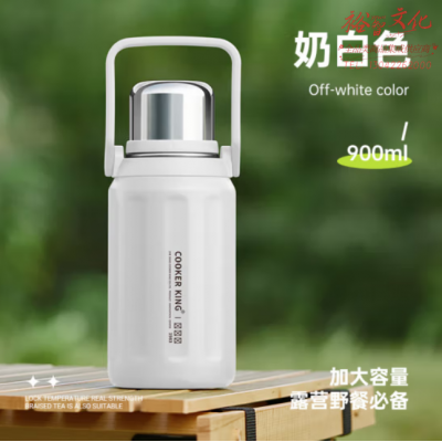 炊大皇(COOKER KING)SX90A2 随行316不锈钢大容量超长保温瓶手拎壶900ml(奶白色)SKU:yzwhyp807593