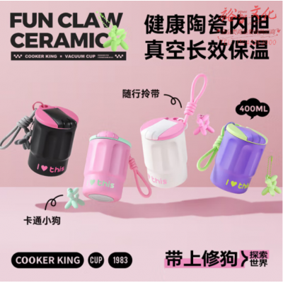 炊大皇(COOKER KING)QQ40A3奇趣保温陶瓷涂层杯 车载户外随手爪爪杯400ml(甜酷黑)SKU:yzwhyp807620