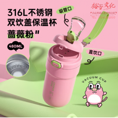 炊大皇(COOKER KING)BG48A4保温杯缤果316L不锈钢双饮随手杯480ml(蔷薇粉)SKU:yzwhyp807626