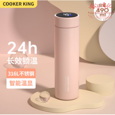 炊大皇(COOKER KING)YD49Z4保温杯 316L不锈钢茶水分离 智能显温 粉色 490ml SKU:yzwhyp807630