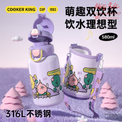 炊大皇(COOKER KING)KH60A2保温杯316L不锈钢双饮水杯 吸管保温杯紫色580ml SKU:yzwhyp807636