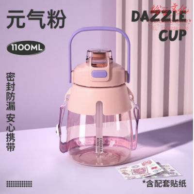 炊大皇(COOKER KING)SY12A3塑料杯双饮大肚杯 运动水壶 大容量随手杯吸管水杯 粉色1.1L SKU:yzwhyp807656