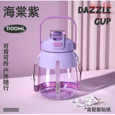 炊大皇(COOKER KING)XC11A1塑料杯双饮大肚杯 运动水壶 大容量随手杯吸管水杯 紫色1.1L SKU:yzwhyp807657