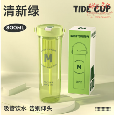 炊大皇(COOKER KING)CD80G1塑料杯大容量 双饮带吸管带茶仓果茶杯水杯 绿色800ml SKU:yzwhyp807689