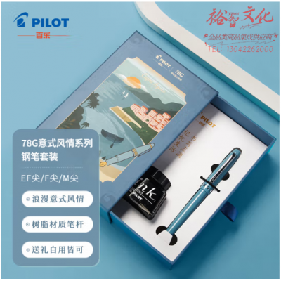 百乐(PILOT)意式风情钢笔墨水套装 商用办公送礼 男女生日礼物 学生练字签字笔 FP-78G蓝灰M尖SKU:yzwhyp807705