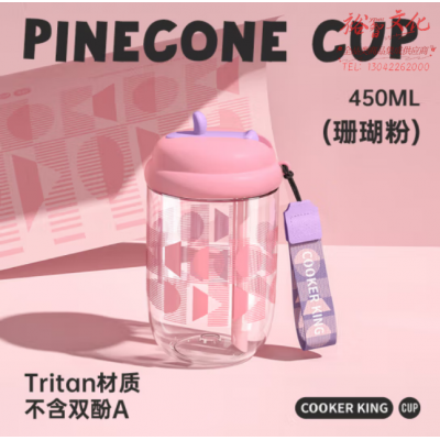 炊大皇(COOKER KING)SG45T3塑料杯Tritan吸管杯 便携水杯 粉色450ML SKU:yzwhyp807718
