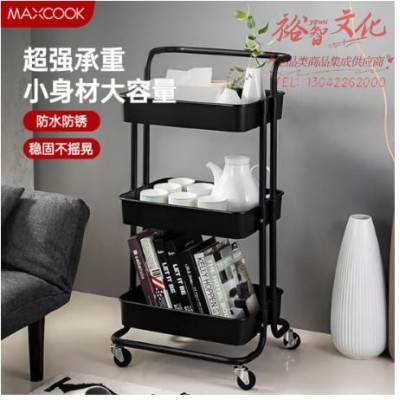 黑色落地三层储物收纳 网篮手推车可移动层架SKU:yzwhyp807839
