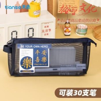 天色(TIANSE)透明网纱笔袋 开学必备礼物复古色系铅笔袋文具盒文件袋简约ins收纳盒 TS-261 深海蓝(平安喜乐)(个)SKU:yzwhyp807862