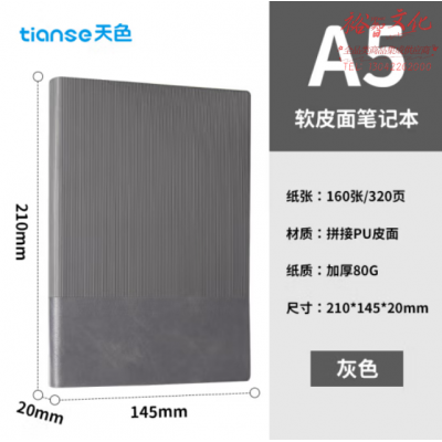 天色(TIANSE)A5笔记本 软皮面记事本 会议记录本 TS-4171 灰色(本)SKU:yzwhyp807869