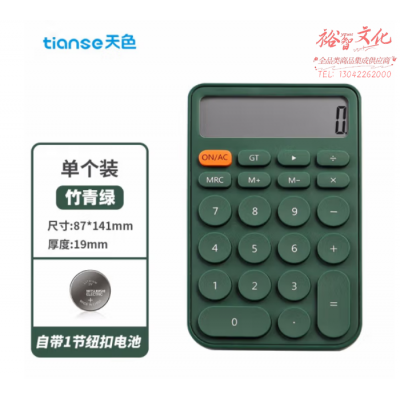 首页 > 办公设备 > 计算器 > 天色(TIANSE)糖果色简约计算器 12位大屏桌面计算器 TS-1721 竹青绿 SKU:yzwhyp807922
