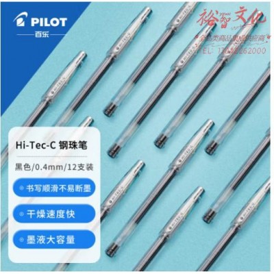 日本百乐(PILOT)针管式超细钢珠中性笔啫喱笔 黑色 0.4mm 12支装 BLLH-20C4-B HI-TEC-C SKU:yzwhyp808050